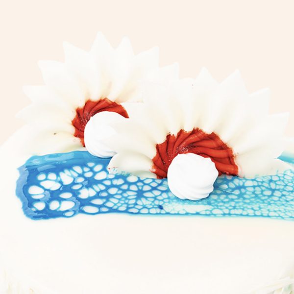 Vanilla Sponge ,Vanilla Whip Topping ,Sugar Syrup , Chocolate Compound